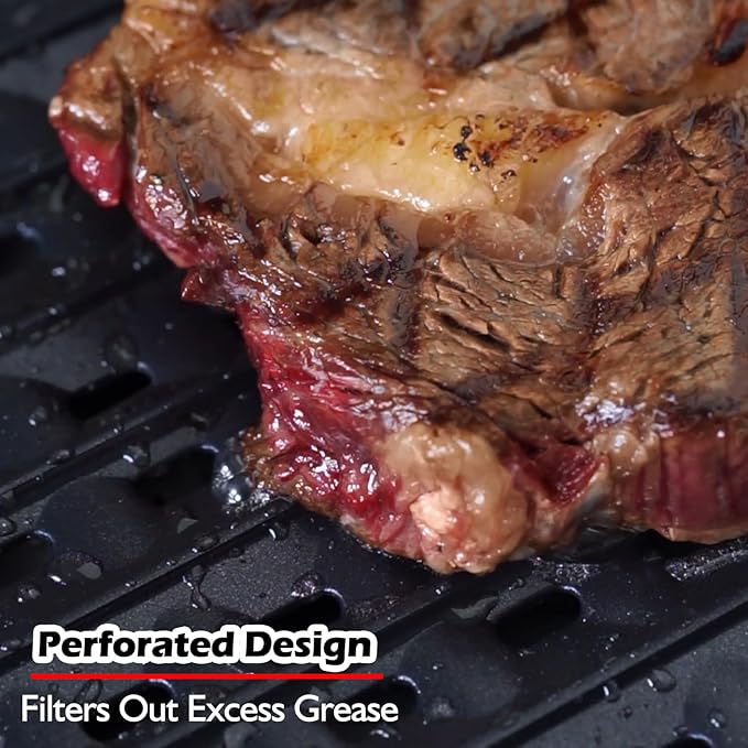 Cusimax Non-stick Perforated Grill Pan, Stove Top Grill Plate, Cast Aluminum Grill Plate for Electric Indoor Grills/Outdoor BBQ, Dishwasher Safe (14.96" x 8.66)