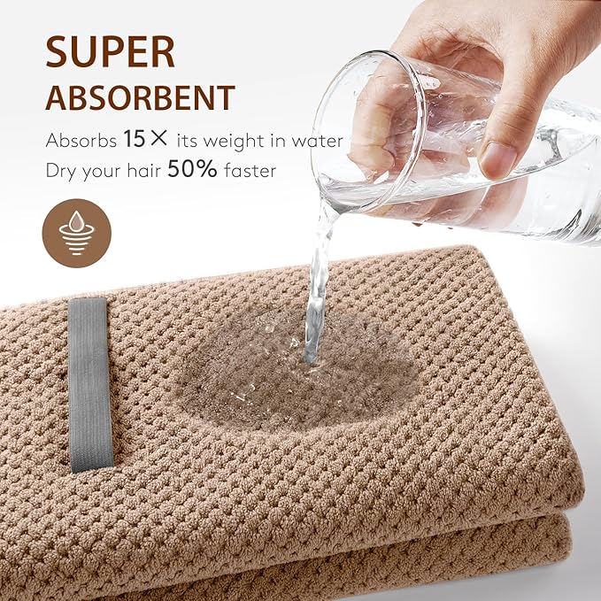 YFONG Large Hair Towel Wrap for Women, Super Absorbent Microfiber Hair Towel for Curly Hair, Fast Drying Hair Turbans with Elastic,Hair Drying Towel Wrap for Hair Care Anti Friz 26.3" X 40" (Brown)