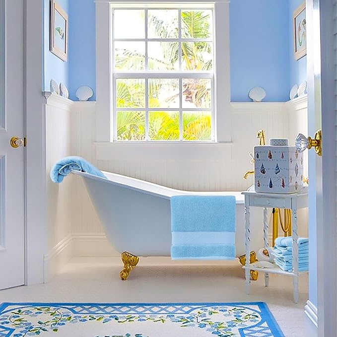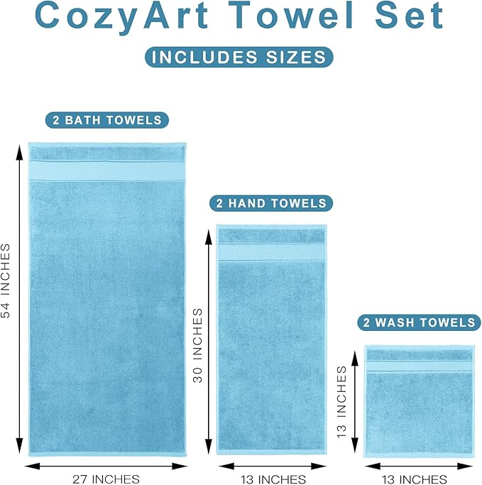 COZYART Light Blue Bath Towels Set 6 Piece, 2 Bath Towels 2 Hand Towels 2 Washcloths, Luxury 100% Turkish Cotton 650GSM Hotel Quality, Soft, Absorbent, Towel Sets for Bathroom