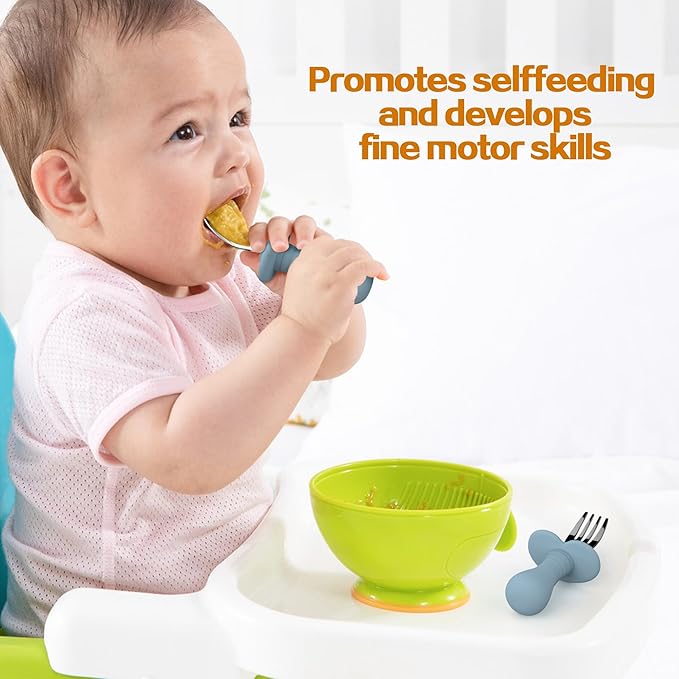- Toddler Utensil Food Grade Material - Forks and Spoons 100% Food Grade Silicone Material and food grade 304 stainless steel, PPA & BPA & PVC Free. Baby can Assured use and eat happily, they’re dishwasher safe, or you can sterilize these utensils for up to 1 minutes in boiling water as well. All parts can be steam or water boiling, microwave & dishwasher safe (time less than 1 minute).