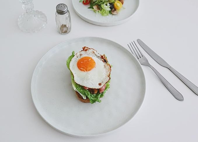 - 【What will you get?】This dinnerware set includes 8 pieces 10.25 inch dinner plates, 8 pieces 8 inch salad plates, 8 pieces 5.5 inch cereal bowls. This is a great combination for a family dinner party. You can safely use them to serve steaks, salads or desserts.