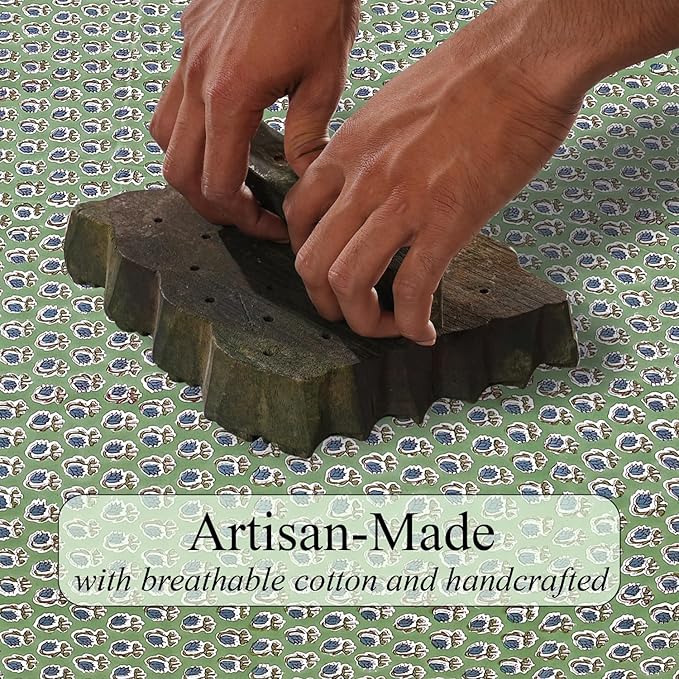 Ridhi Basil Green Hand Block Print Cotton Rectangle Tablecloth 118" x 70" inches Reusable Table Cover Decorative Everyday Use for Dining, Farmhouse, Home, Party, Festive, Wedding, Fall