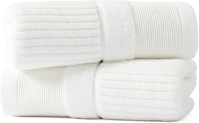 sense gnosis White Hand Towel Set of 2 Ribbed Striped Pattern Soft Thick 100% Cotton Quick Dry Absorbent Decorative Hand Towels for Bathroom 13 x 29 Inch