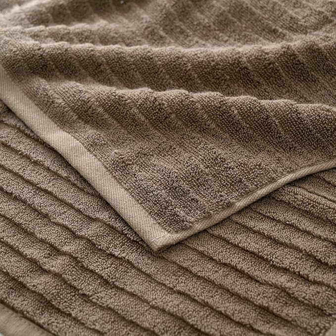 sense gnosis Super Soft Luxury Hand Towel Stereoscopic Ladder Striped Design 100% Cotton Absorbent Decorative Hand Towel for Bathroom 13 x 29 Inch (Brown, 2 Pack)