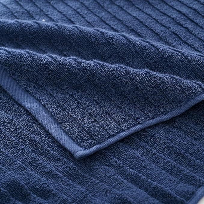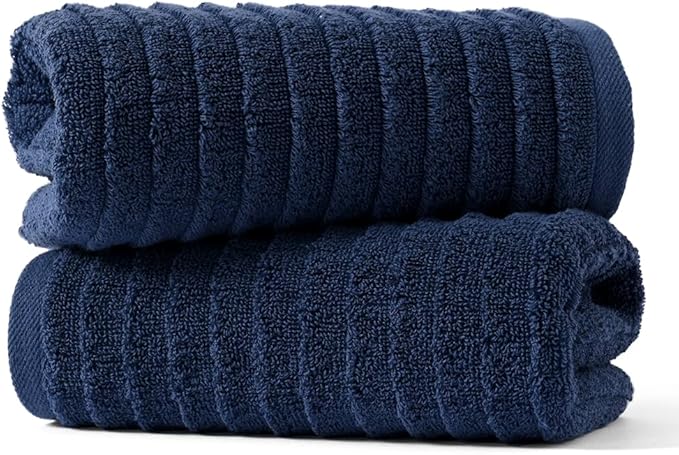 sense gnosis Navy Hand Towel Set of 2 Soft Stereoscopic Ladder Striped Design 100% Cotton Absorbent Luxury Decorative Towel for Bathroom 13 x 29 Inch