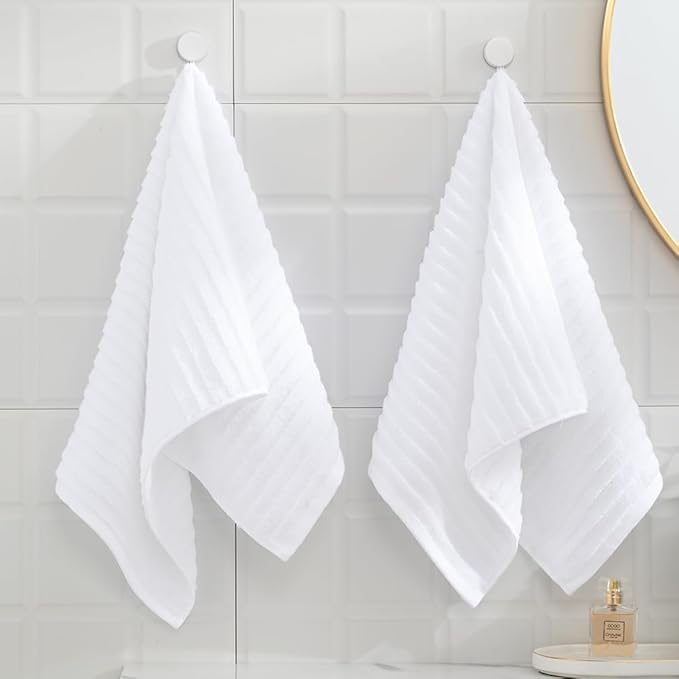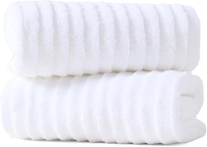 sense gnosis 100% Cotton White Hand Towel Set of 2 Thick Stereoscopic Ladder Striped Soft Quick Dry and Absorbent Bathroom Decorative Hand Towel 13 x 29 Inch