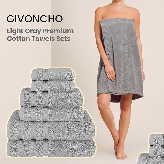 6-Piece 600 GSM Turkish Cotton Towel Set – Luxury Soft & Absorbent Bath Towels, Hand Towels & Washcloths – Premium Bathroom Essentials for Home, Guest Bath & Apartments
