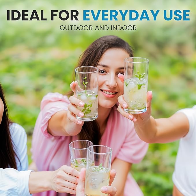 - DAILY WATER GLASSES: We have designed these acrylic drinking glasses with a smooth and polished rim and large mouth opening for easy refill. Present colorful drinks and garnishes in these elegantly designed drinkware.