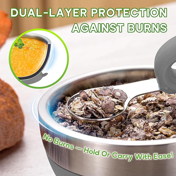 - 𝗗𝗼𝘂𝗯𝗹𝗲-𝗟𝗮𝘆𝗲𝗿 𝗜𝗻𝘀𝘂𝗹𝗮𝘁𝗶𝗼𝗻: Keeps food at the perfect temperature while protecting little hands from hot surfaces