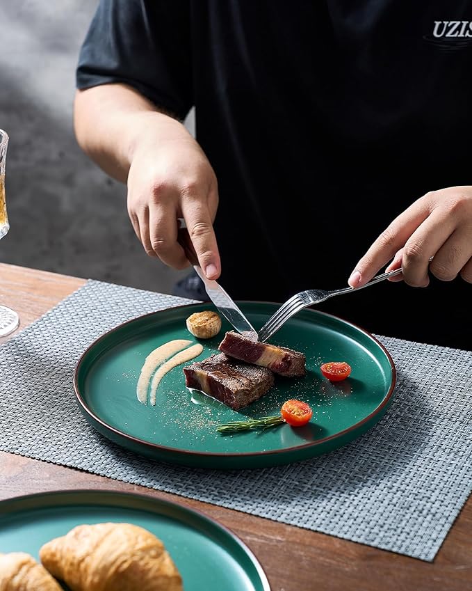 - 【FOOD GRADE NATURAL GLAZE】All of our dinnerware sets are made of food grade glaze. You can safely use them to serve steaks, salads or desserts, no need to worry about any harmful substances leaching into the food.