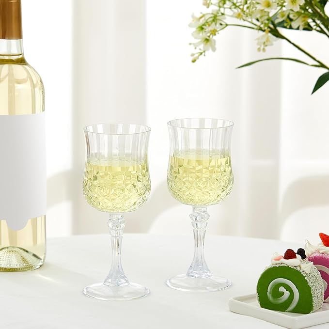 - Crystal and Vintage Design: these plastic goblets adopt a stemmed design, easy for you to hold; In addition, the body is provided with a crystal like grain which is textured and elegant, it will be an elegant decoration at home