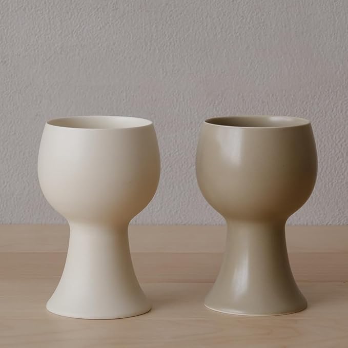 WENSHUO Ceramic Goblet, Wine Glasses Set of 2, 10 oz (Matte Crème & Coconut Café)