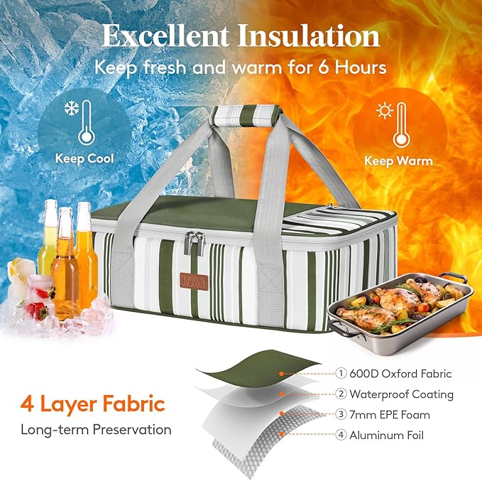 - No Leaking Problem: Our casserole dish carrier with lid is crafted from hot-pressed, leak-proof aluminum foil, which helps maintain the ideal temperature of your food and can be easily wiped clean. You can confidently take it on-the-go without any worries of leakage.