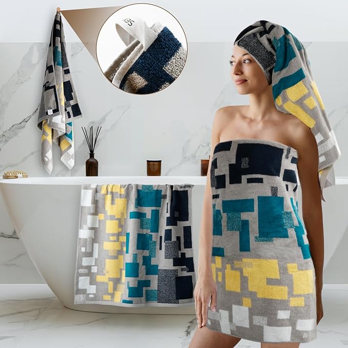 - Material: The towel set is made of 100% pure cotton, lightweight, super absorbent and soft—perfect for everyday use in the bathroom, shower, gym, beach, pool, spa, hotel