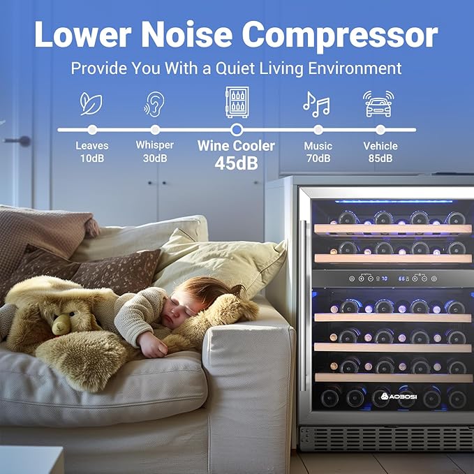 - π§γππ€π¬ ππ€ππ¨π ππ₯ππ§ππππ πΎπ€π’π₯π§ππ¨π¨π€π§γAAOBOSI Wine Cooler Refrigerator uses a state-of-the-art compressor, which maintains high efficiency while allowing you to enjoy a quiet life. The upgraded compressor allows the wine to maintain its good quality for a longer period, and it is a good choice to put it in your living room or kitchen. Noise-sensitive wine collectors will also appreciate that it operates almost silently.