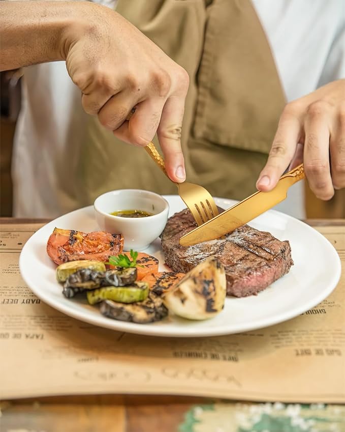 - Premium Forged Craftsmanship: Crafted with precision forging and polished to perfection, which hammered cutlery sets feature smooth edges and elegant curves. Easy to clean, hand wash or dishwasher safe, enjoy every times without worries.