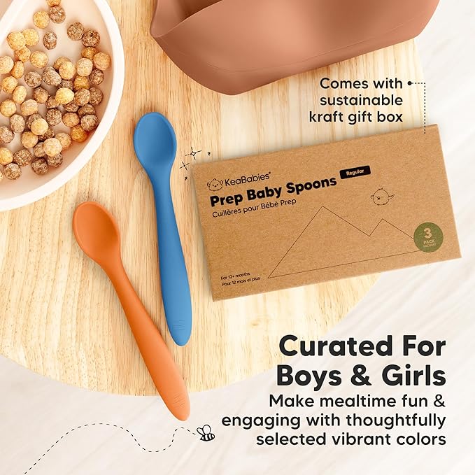 - Safer Silicone - KeaBabies 3-Pack Prep Silicone Baby Spoons Set is made from 100% food-grade, BPA-free silicone. With a topple-free handle and comfort sized scoop, these infant spoons help BLW babies build confidence as they learn self-feeding.