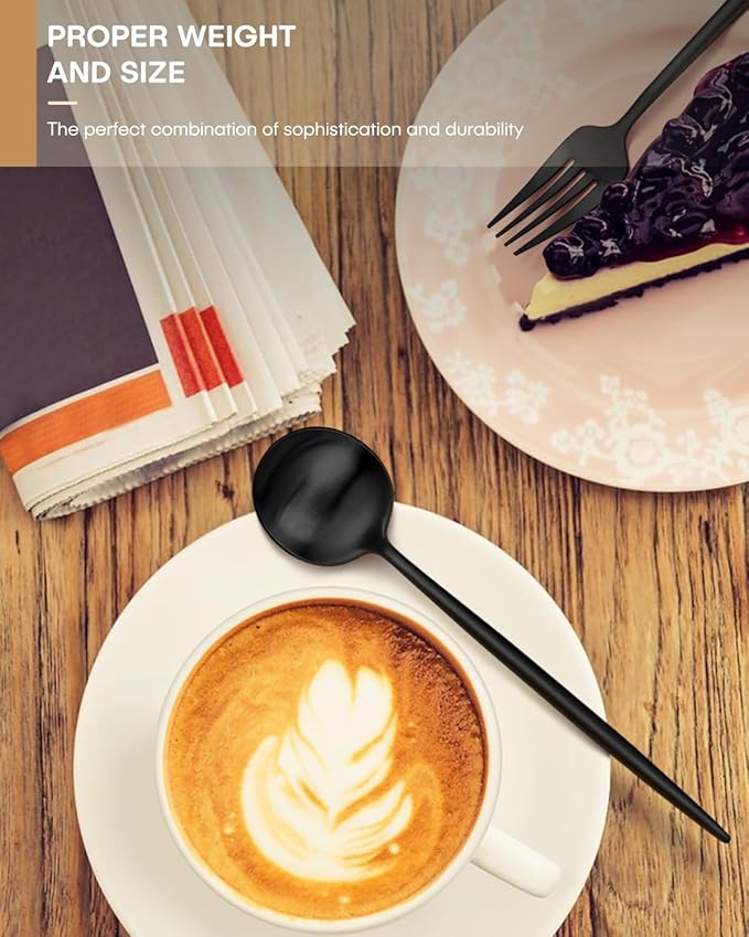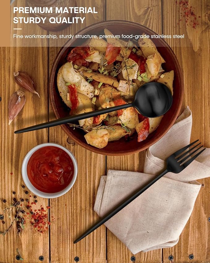 - Exquisite Workmanship -Crafted from food-grade stainless steel, Ollex black matte silverware set offers superior durability and safety. Smooth surface and edges, fade-resistant, rust-free, Dishwasher Safe. Enjoy a seamless dining experience with elegant and hassle-free Matte Flatware Set.