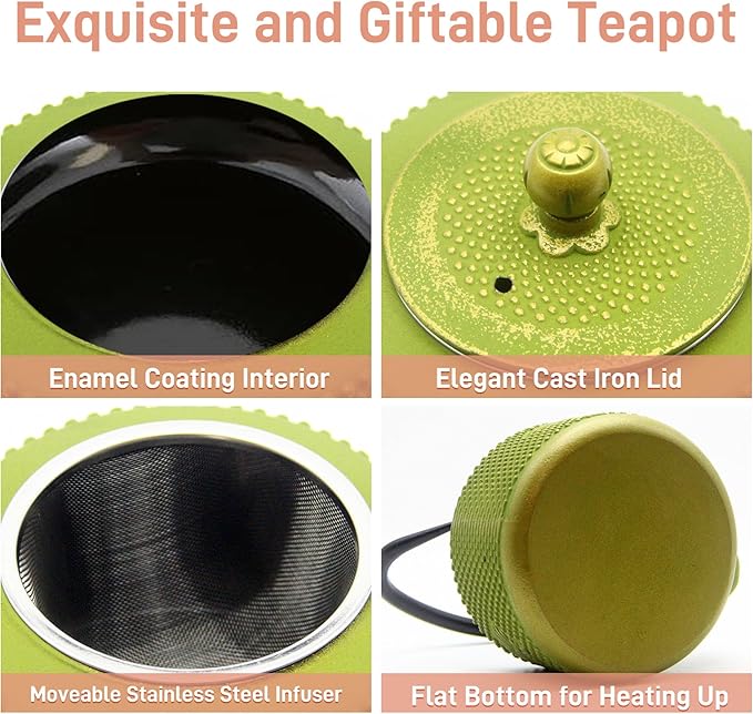 - The heavy cast iron teapot can improve water quality,enhance tea taste and retain heat better.