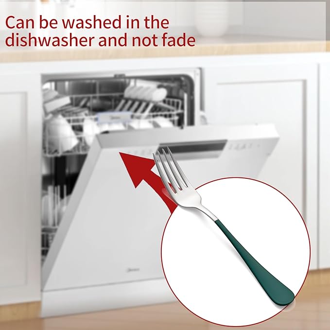 Green Dinner Fork, 18/0 Green handle Stainless Steel Satin Finish 8.1-inch Silverware Flatware Fork Set, Set of 24, Dishwasher SafG
