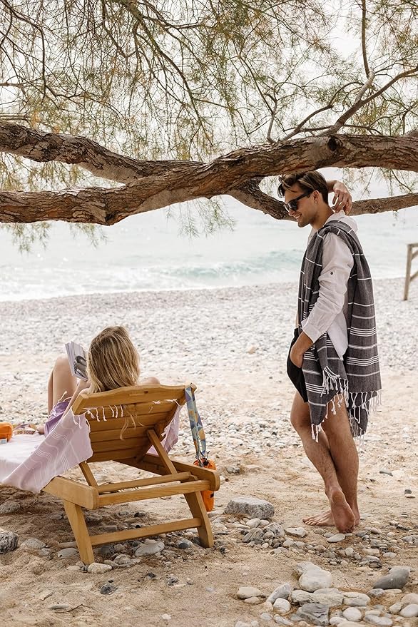 - Made from top-notch, sustainably sourced recycled Turkish cotton and OEKO-TEX certified waterproof dyes, our Turkish beach towels feature a unique flat weave that won’t trap sand. Say goodbye to beach sand in your car and bathroom!