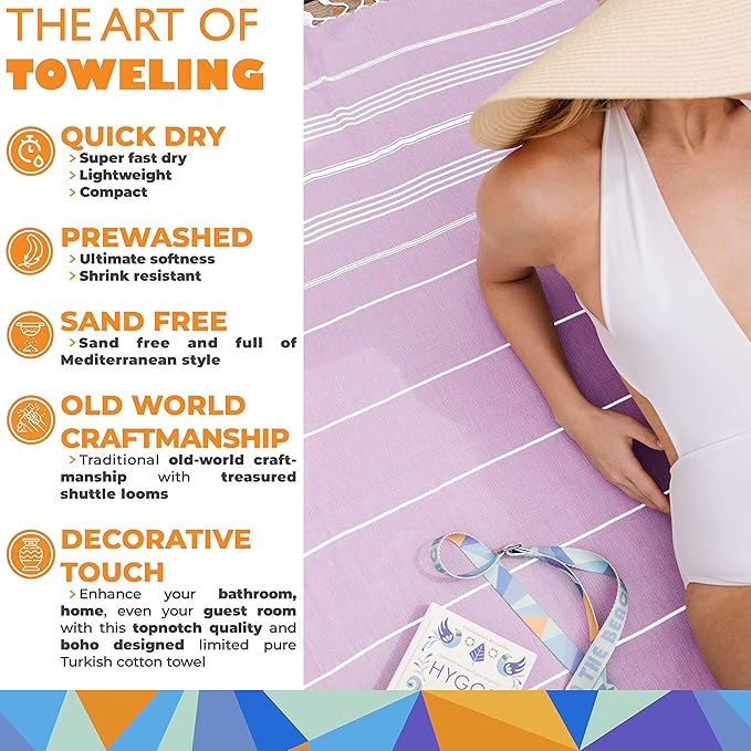 - SOFT, DURABLE, & EVER-SOFTENING: Our Turkish beach towels are crafted from premium, recycled cotton that grows softer with each wash. Pre-washed to minimize fading and fraying, they’re a delight for sensitive skin and built to last.