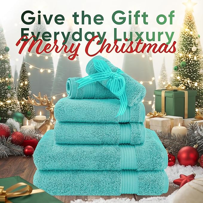 American Veteran Towel, 6 Piece Towel Set for Bathroom, 100% Cotton Turkish Bathroom Towels, 2 Bath Towels 2 Hand Towels 2 Washcloths, Turquoise Blue
