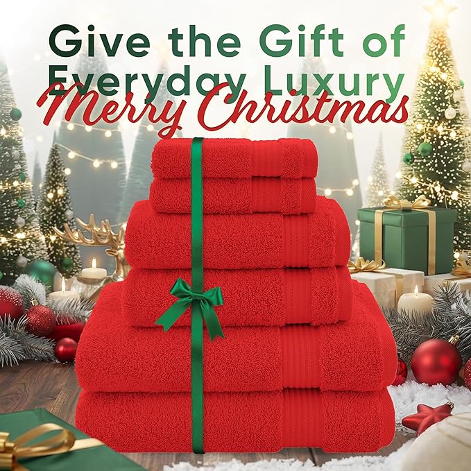 American Veteran Towel, 100% Cotton Turkish 6 Piece Towel Set, Luxury Towels Set of 6 for Bathroom Essentials, 2 Bath Towels 2 Hand Towels 2 Washcloths, Red
