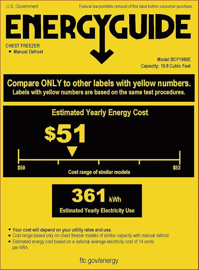 - Deep Freezer Storage: Large 19.8 cu. ft. capacity holds a substantial amount of frozen foods including cold meat, frozen dinners and ice cream. Keeps perishables frozen for your home or garage