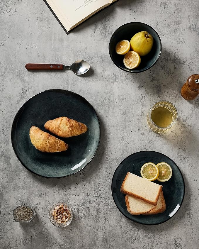 - 【Double Reactive Glaze】Double reactive glaze are combined through firing at high temperatures to create a special and fantastic glaze color. The color of the same set of tableware may have some differences, so that each plate and bowl is unique. This glaze also tends to show different colors depending on the light. The color may be a little different from what you see on the screen