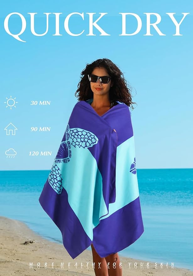 - Practical and Versatile : Our Microfiber Beach Towel is designed for modern beach enthusiasts. Its sand resistant and quick drying properties make it hassle free to shake off sand and pack up. Plus, it folds compactly for easy carrying in your beach bag or travel backpack
