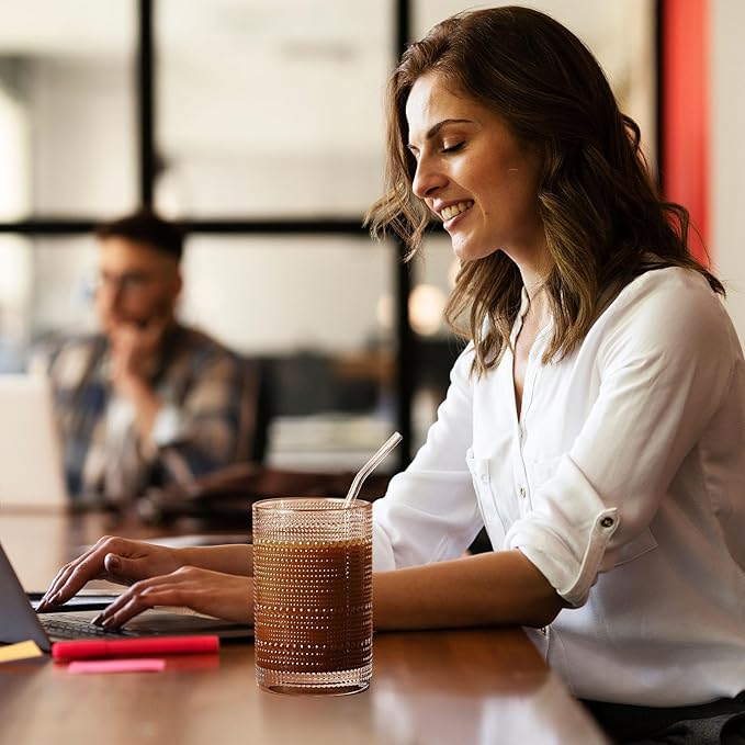 - 【Suitable for Any Occasion】The elegant glassware are great for any hot and cold drinks for any occasion. You can use it to drink refreshing beer, make perfect cocktails, whiskey, all kinds of tea, juice, milk shake. It is widely loved in homes, kitchens, milk tea shops, cafes, bars and restaurants