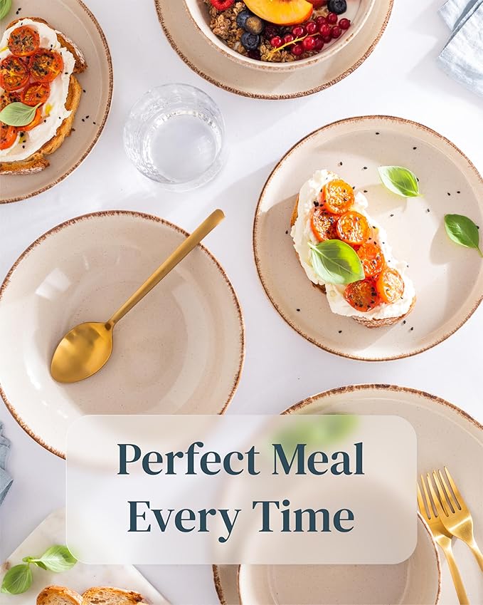 - ✅ BRING RUSTIC CHARM TO YOUR HOME: Elevate your dining experience with this 16-piece dinnerware set in rustic beige stoneware, adding a touch of elegance and coziness to your table setting.