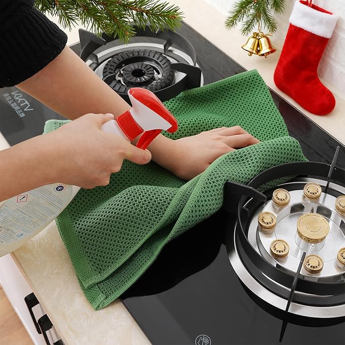 Homaxy 100% Cotton Waffle Weave Kitchen Dish Towels, Ultra Soft Absorbent Quick Drying Cleaning Towel, 13 x 28 Inches, 12-Pack, Grass Green