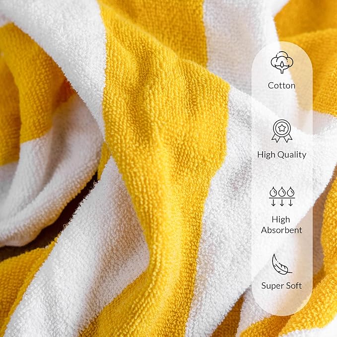 - Super Absorbent Towels : Our beach towel bulk, measuring 30” x 60”, is designed to be compact and lightweight making it the must have pool accessories for adults. These cabana towels are poolside must haves and the ideal choice for all your summer adventures, offering versatility and convenience wherever you go even as picnic blankets. These bath sheets are quick dry towels. These are classic striped bath towels making it best for all aesthetic.