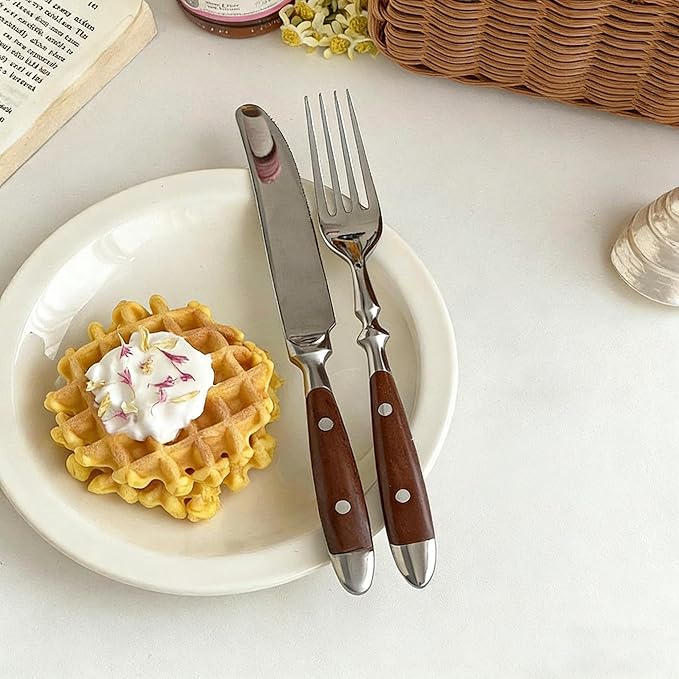 - đ˝ăHigh Quality Materialsă:Solid made of premium quality 18/10 stainless steel, Rust resistance, The silverware has a delicate luster, the handle is round and thick, the lines are smooth and comfortable,Healthy and durable for everyday use, Easy clean.