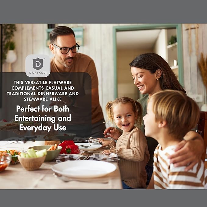 - 80-Piece Silverware Set – Service for 16: Includes 16 each: dinner forks, salad forks, dinner knives, soup spoons, and teaspoons. Designed for large families, events, or entertaining on a grand scale—the Imperial set is Danialli’s most elegant floral design for unforgettable dining.