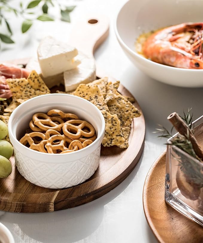 - Intricate Embossed Aesthetic: Elevate your tabletop with these fascinating oven-safe bowls, adorned with a captivating embossed design. Small ceramic mixing bowls have patterns. A charming rustic style perfect for daily dining, afternoon tea treats, or festive get-togethers