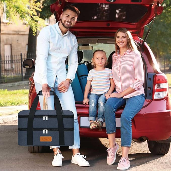 - 【Leak-proof Lining & Durable】Our casserole carrier is crafted from hot-pressed leak-proof aluminum foil, which prevents leaks and spills. The casserole carriers for hot or cold food with Dish Storage is dirt and abrasion resistant and easy to wipe down. The internal aluminium lining makes cleaning a breeze, simply wipe down the interior or exterior with a damp cloth, cool water and neutral soap and air dry.