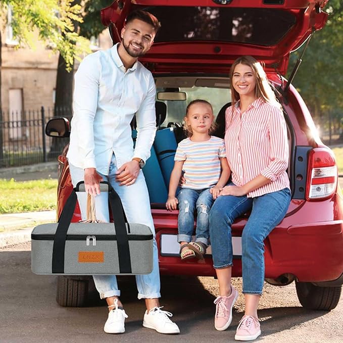 LHZK Insulated Casserole Carriers for Hot or Cold Food, Lasagna Holder Tote for Potluck Parties, Beach, Picnic, Travel, Fits 11x15 or 9x13 Dish (Grey)