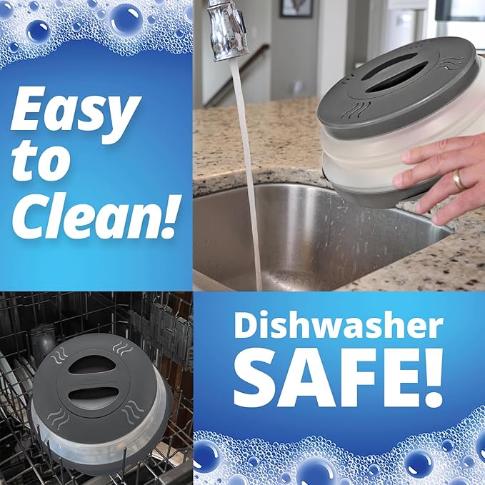 - SAFE, DURABLE, & BPA-FREE MATERIAL – Crafted from BPA-free materials, this microwave splatter cover withstands temperatures up to 300°F. Fully tested to meet safety standards, it’s patented design ensures a secure, reliable fit for every use. Safe for the entire family, it’s the perfect solution for food protection in your microwave.