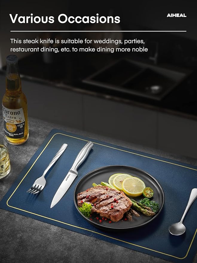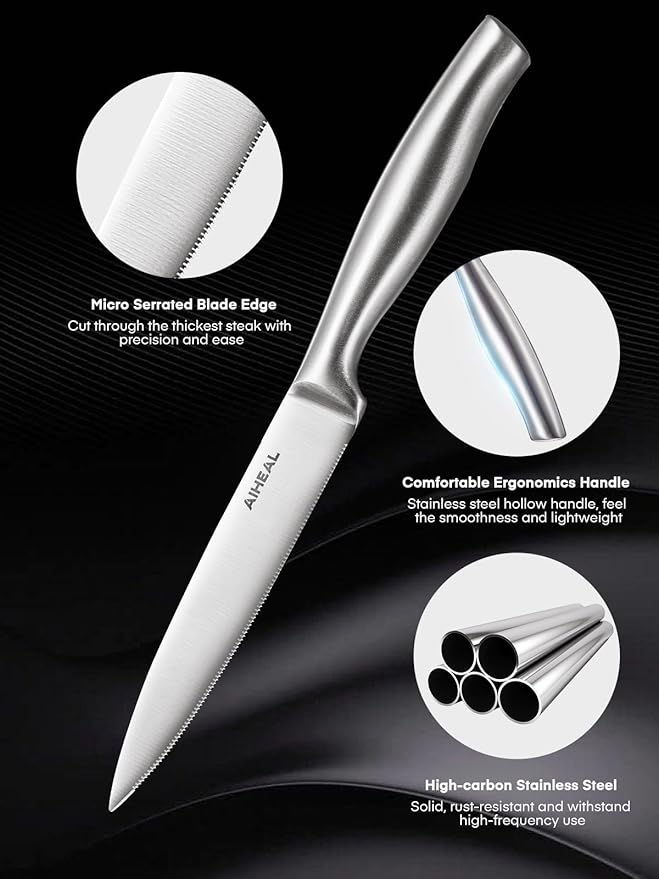Aiheal Steak Knives, Stainless Steel Steak Knives Set of 12, Never Needs Sharpening Dinner Steak Knife Set, Sharp Micro Serrated Knives