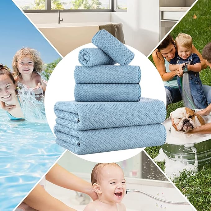CASA COPENHAGEN Popcorn 6 Pieces Towel Set- Dusty Blue, 600 GSM 2 Bath Towel 2 Hand Towel 2 Washcloth, Designed in Denmark Made of Soft Egyptian Cotton for Bathroom, Kitchen & Shower