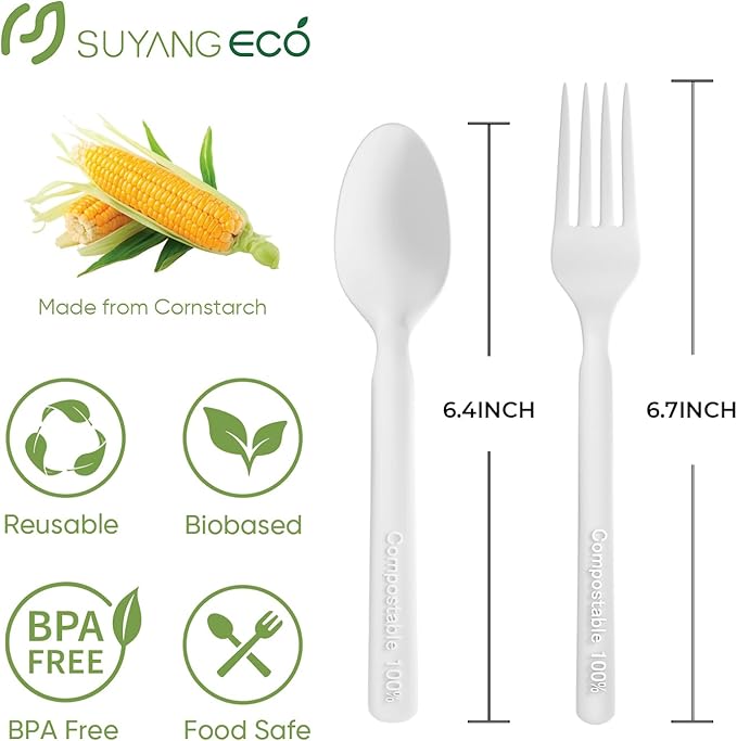 - 【NOT EASILY BROKEN】Compostable utensils is made of natural corn starch, free of any harmful chemicals, sturdy and durable, bends but doesn't break easily.