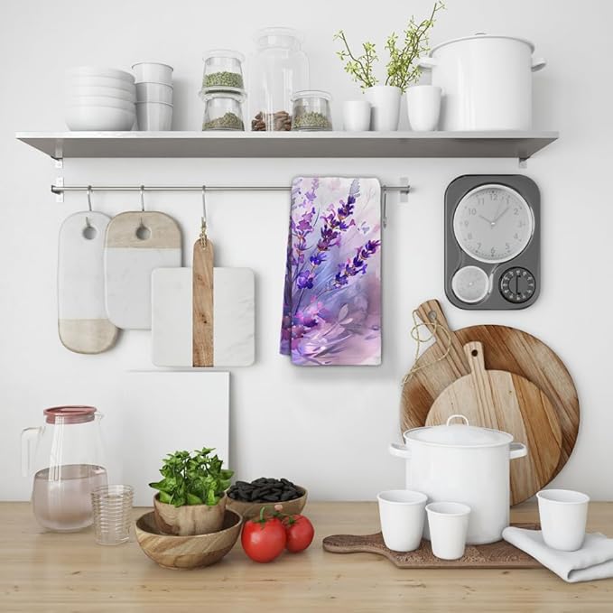 - 【Versatile Towel】Experience versatility at its finest with lavender kitchen towels. They seamlessly transition between various roles: hand towels, face towels, kitchen towels, bath towels. Floral bathroom hand towels are perfect for the bathroom, kitchen, hotel, gym, swimming pool, beach, or any activity setting.