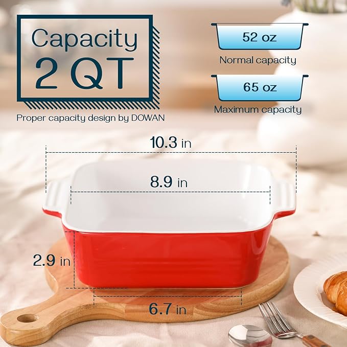DOWAN 8x8 Baking dish, Square Baking Pan, Ceramic Casserole Dishes for Oven, Cake Pan with Handle, for Brownie, Lasagna, Casserole, 2 Quart, Home Gift, Wedding Gift, Red