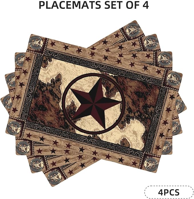 - PATTERNED DESIGN: The Washable Placemats Feature High Definition Printing, Vivid Colors, and Clear Patterns. These Plate Mats with Western Texas Star Map on Rustic Old Barn Wood Plank Patterns Are Beautiful and Clear, Adding More Fun to Your Home