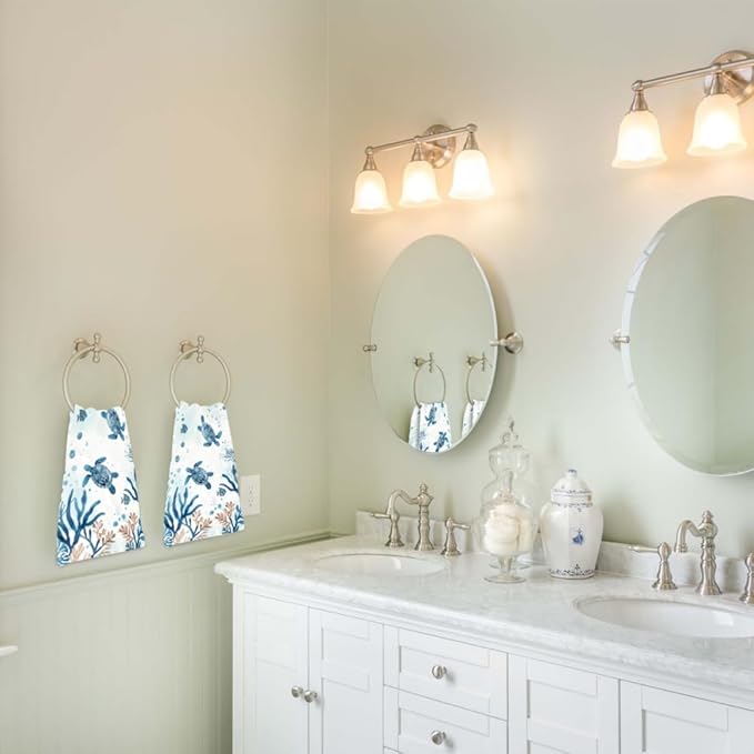 - 【Easy Care】Wash our sea turtle hand towels with ease – either by hand or machine – using low-temperature water to prevent wear and pilling. Skip wringing and let them air dry quickly. Smooth the fabric in the pattern direction for a pristine appearance. Advisable to wash them before their first use.