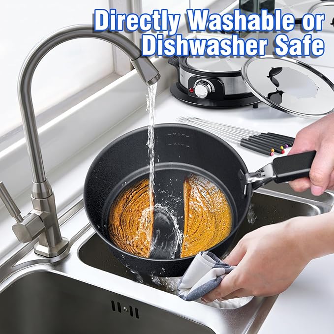 - CLEANUNG: the inner liner of the hot pot is non-stick liner, easy to clean, can be rinsed directly with water or put into the dishwasher (except fondue maker)