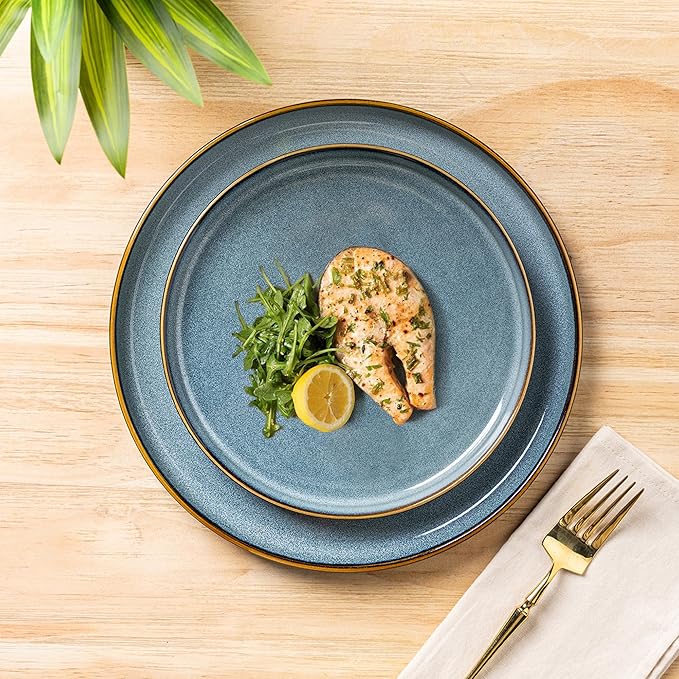 - BEAUTIFUL REACTIVE GLAZE AND SCRATCH RESISTANT: Feature a unique reactive glaze finish, each piece with handcrafted decorative is beautifully individual, adding a touch of sophistication to your table setting, our dishes are fired at 2350℉ for 13 hours making it forming a sturdy and durable scratch resistant glaze, no need to worry about scratches from your forks or knives